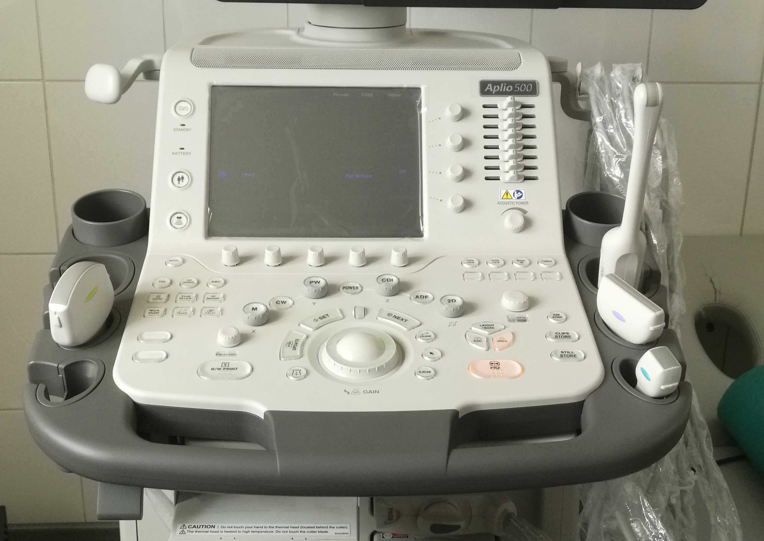 "Когда я слышу о приборах из Японии, я всегда ожидаю технологическое чудо. У меня эта страна ассоциируется с современными инженерными решениями. Я был очень удивлен, когда руководство решило установить ультразвуковой сканер Японской фирмы Canon (Toshiba) Aplio 500. Первое отличие от прочих машин, на которое я обратил внимание, это крупная педаль блокировки колес. Не нужно блокировать каждое колесо отдельно, чтобы зафиксировать сканер. Одно нажатие, одной ногой.