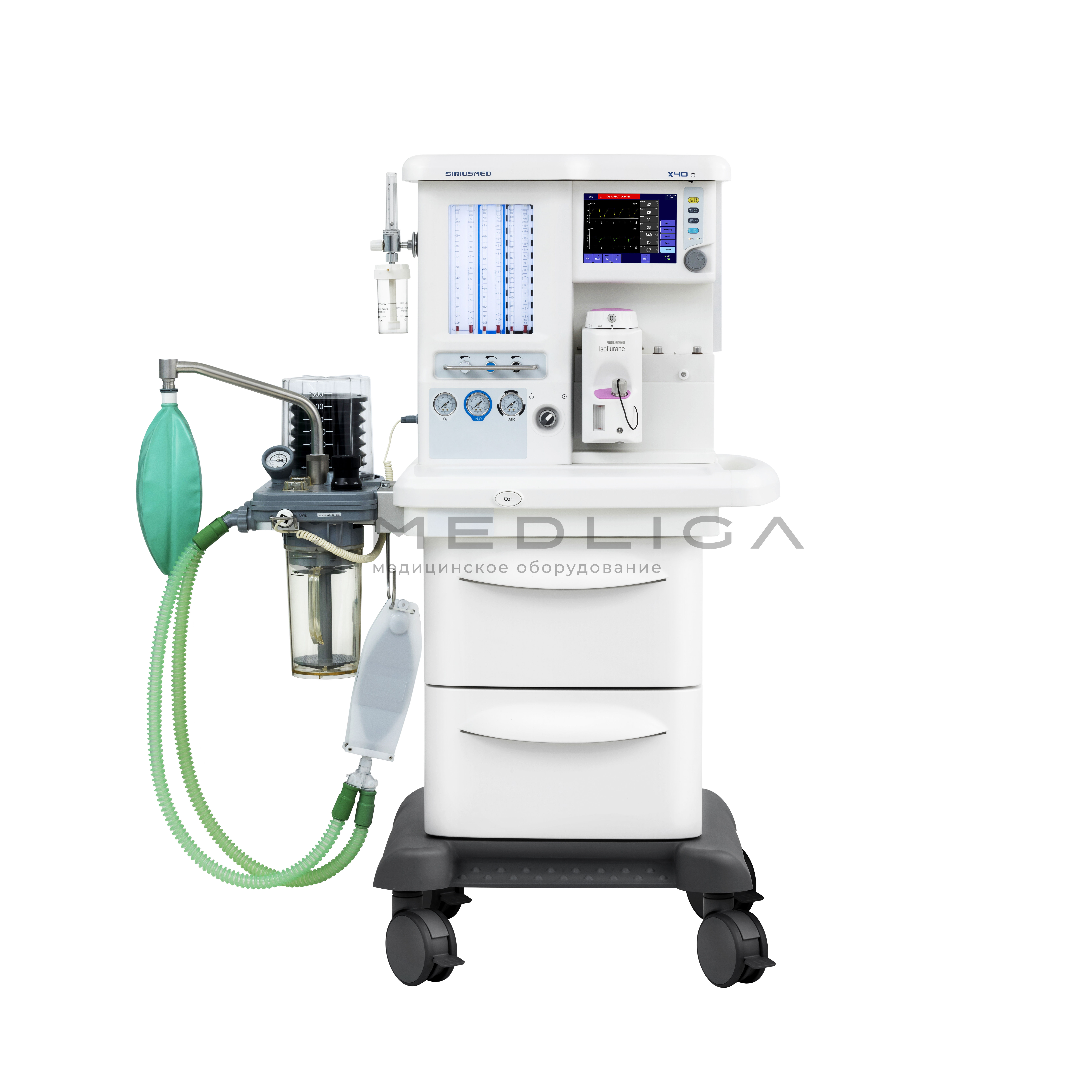 Аппарат наркозно-дыхательный Maja, исполнение Х40. Для всех групп пациентов. Работа по полузакрытому, закрытому и полуоткрытому контуру.