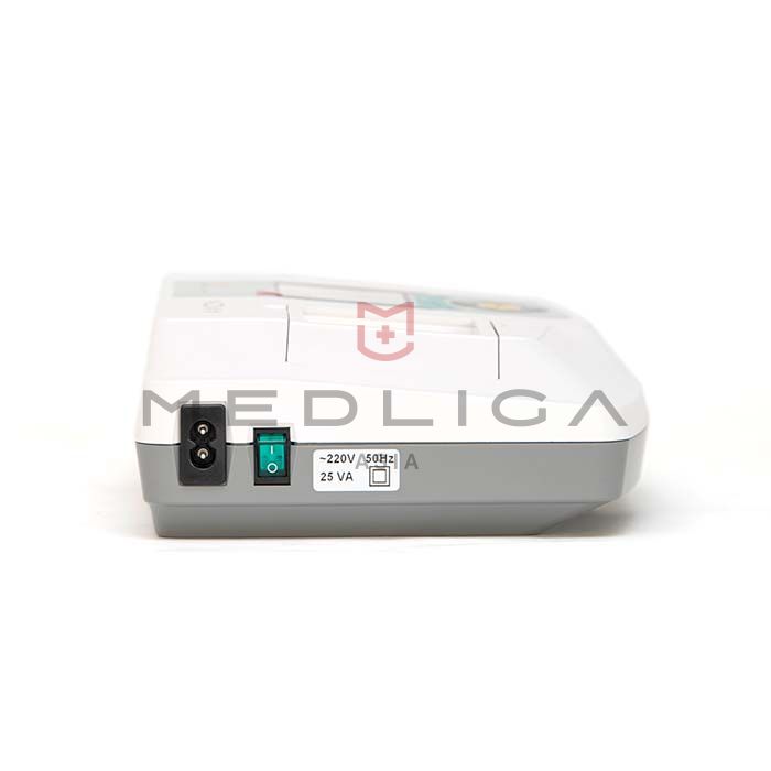 - Световая индикация питания сети переменного тока, заряда аккумулятора, состояния фильтров, нарушения контакта электродов, отсутствия термобумаги