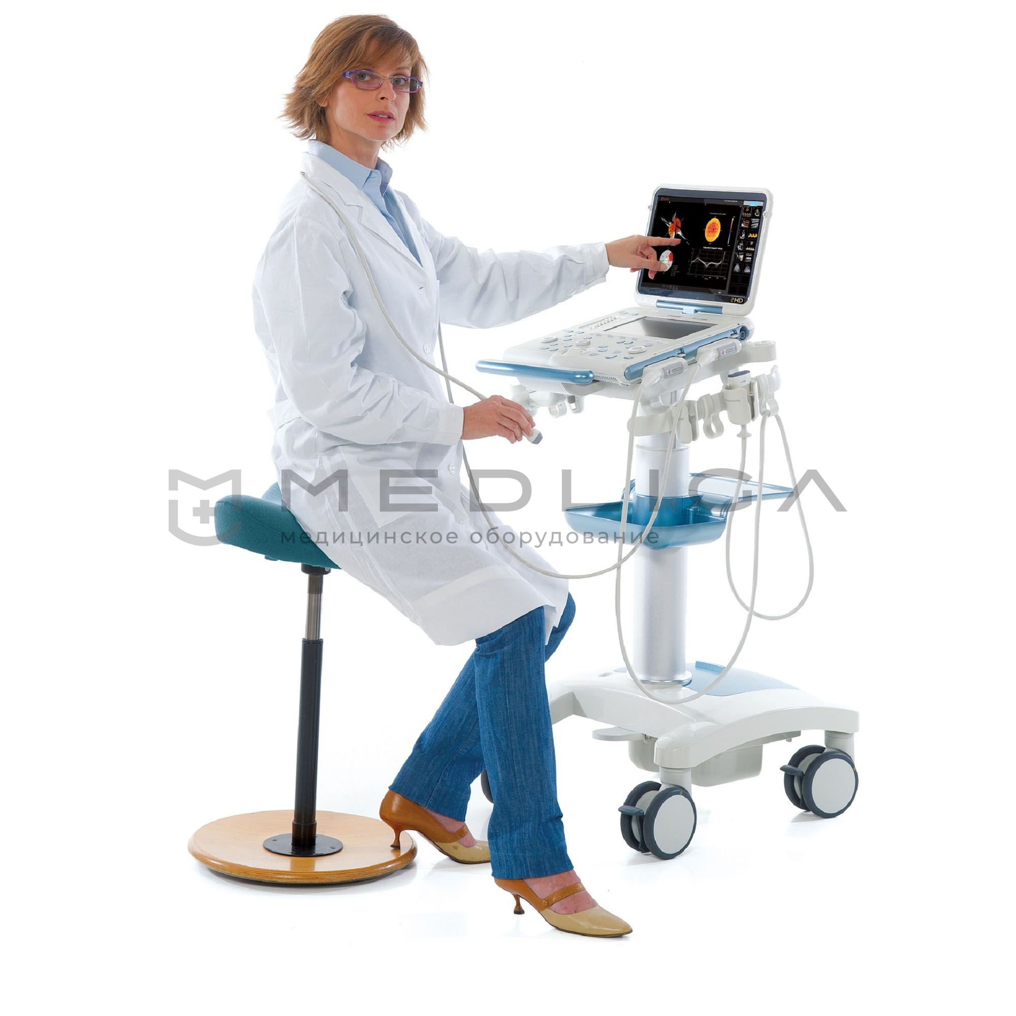 Новейший дизайн совмещен с эргономичной панелью управления, которая имеет функцию подсветки клавиш при недостаточном освещении, большим монитором, который регулируется по высоте и поворачивается в разные стороны, удобной QWERTY-клавиатурой для вноса данных о пациенте.