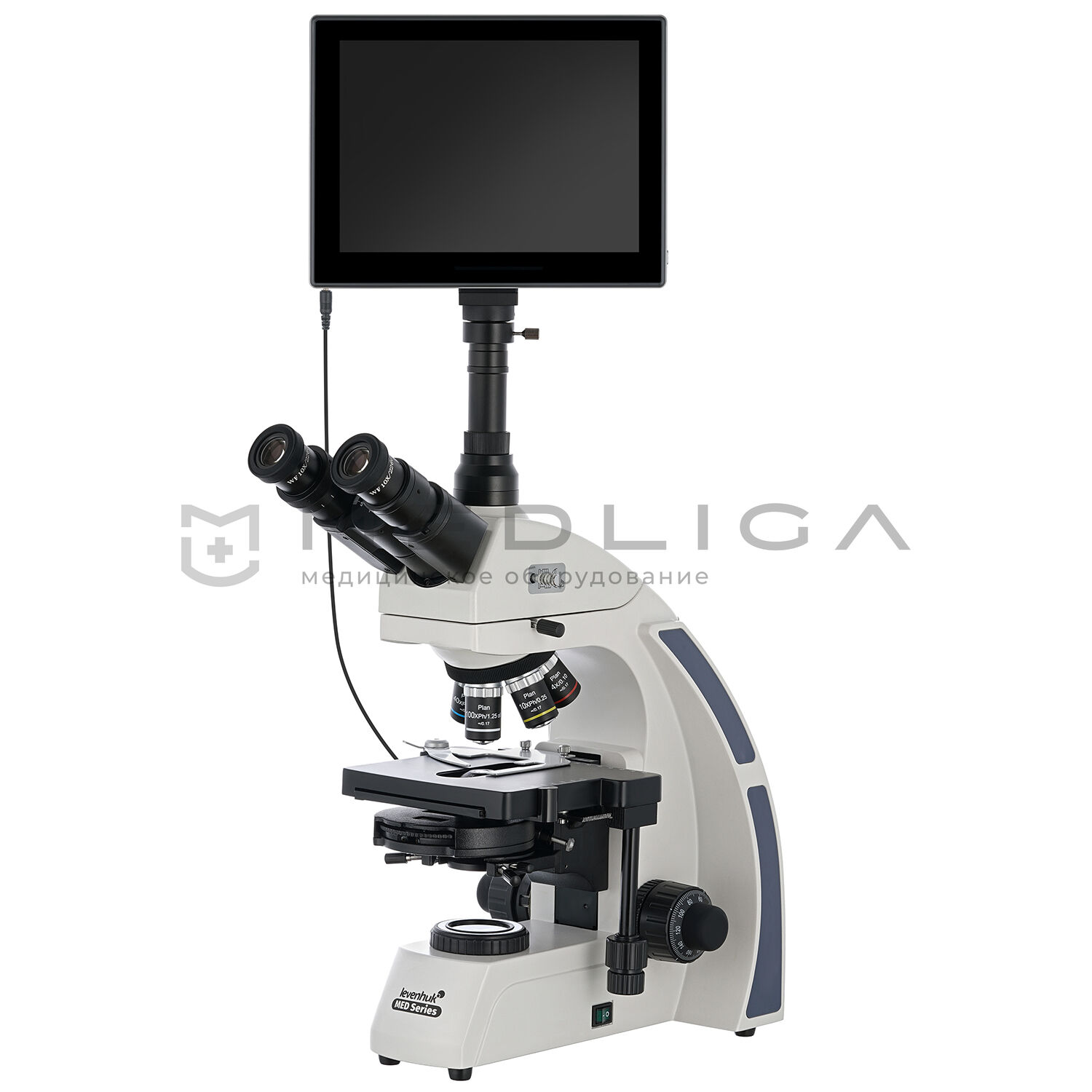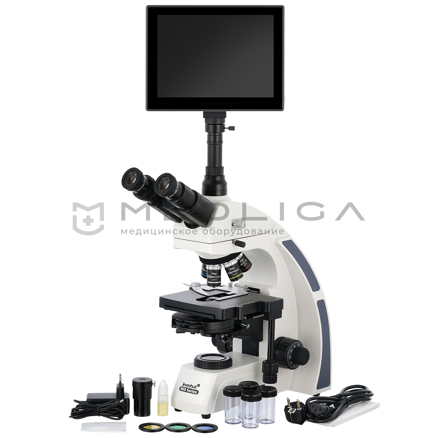 - Тринокулярный микроскоп с увеличением от 40 до 1000 крат