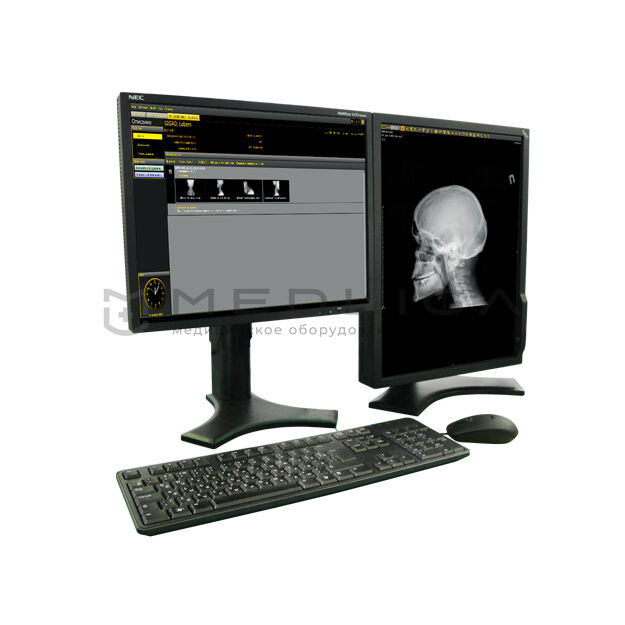 Дисплей с чувствительным сенсорным экраном высокого разрешения позволяет управлять параметрами экспозиции, просматривать полученное изображение на экране монитора, выполнять предварительные настройки и регулировки качества изображения (яркость, контрастность, масштаб и т.д.), опубликовывать полученные данные по протоколу DICOM на DICOM-совместимые рабочие станции (АРМ врача-рентгенолога).